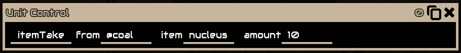 ucontrol itemTake @coal nucleus1 10