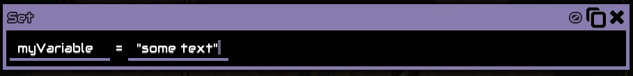 Example (set "myVariable" to the text "some text")